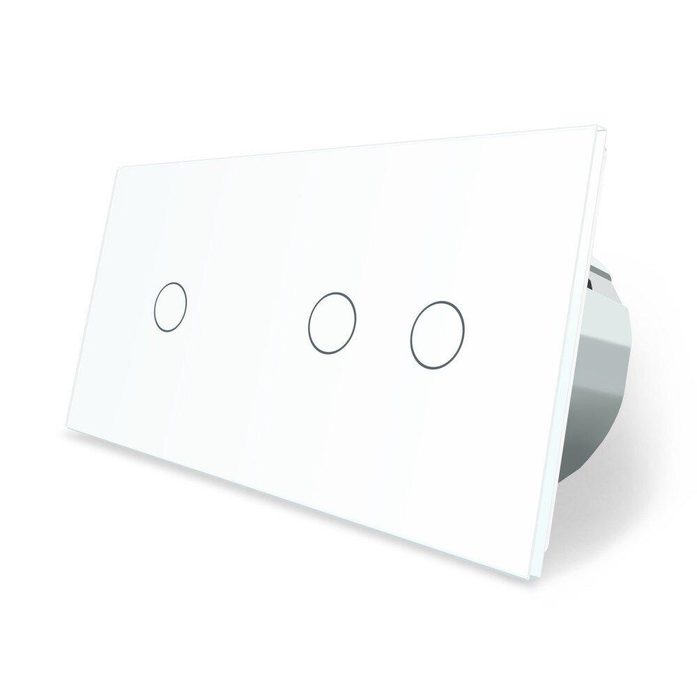 Сенсорний вимикач 3 сенсора (1-2) Livolo білий скло (VL-C701/C702-11)
