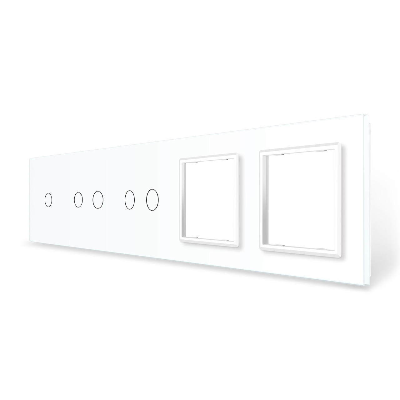 Рамка 5-постова для одного 1-сенсорного, двох 2-сенсорних вимикачів і двох розеток (1-2-2-0-0) LIVOLO, загартоване скло, біла,